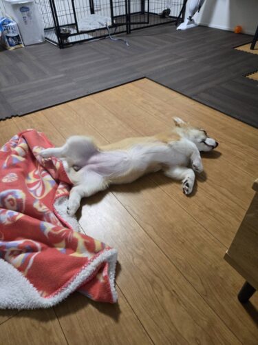 服の件ですが、ウチでは皆んな裸族です! コーギーは寒さには強いですが、一般の飼主さんは服を着せている方も沢山おられますね。 着せても、着せなくても、どちらでもいいと思いますが、生後4ヶ月では直ぐにサイズが合わ