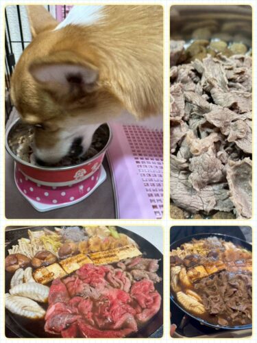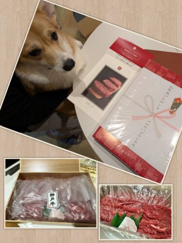 ワンズ達にも食べてもらいたいので、神戸牛のプレゼントですがサシ控えめの赤身肉