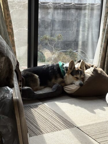リビングの日向とクッションをこぎん太さんに占領されています💦